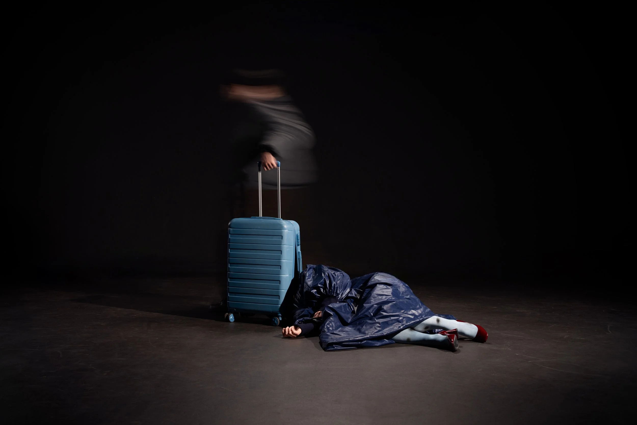 Two strangers at an airport fall asleep after a flight delay, slipping into shared lucid dreams. Their subconscious minds merge, transforming the mundane into a dark, surreal journey. As they unknowingly project each other’s hidden fears and desires, the piece becomes a powerful metaphor for psychological projection. Blurring the line between reality and fantasy, it unveils the delusions that shape both our dreams and waking lives through a hybrid of physical theatre and street styles.